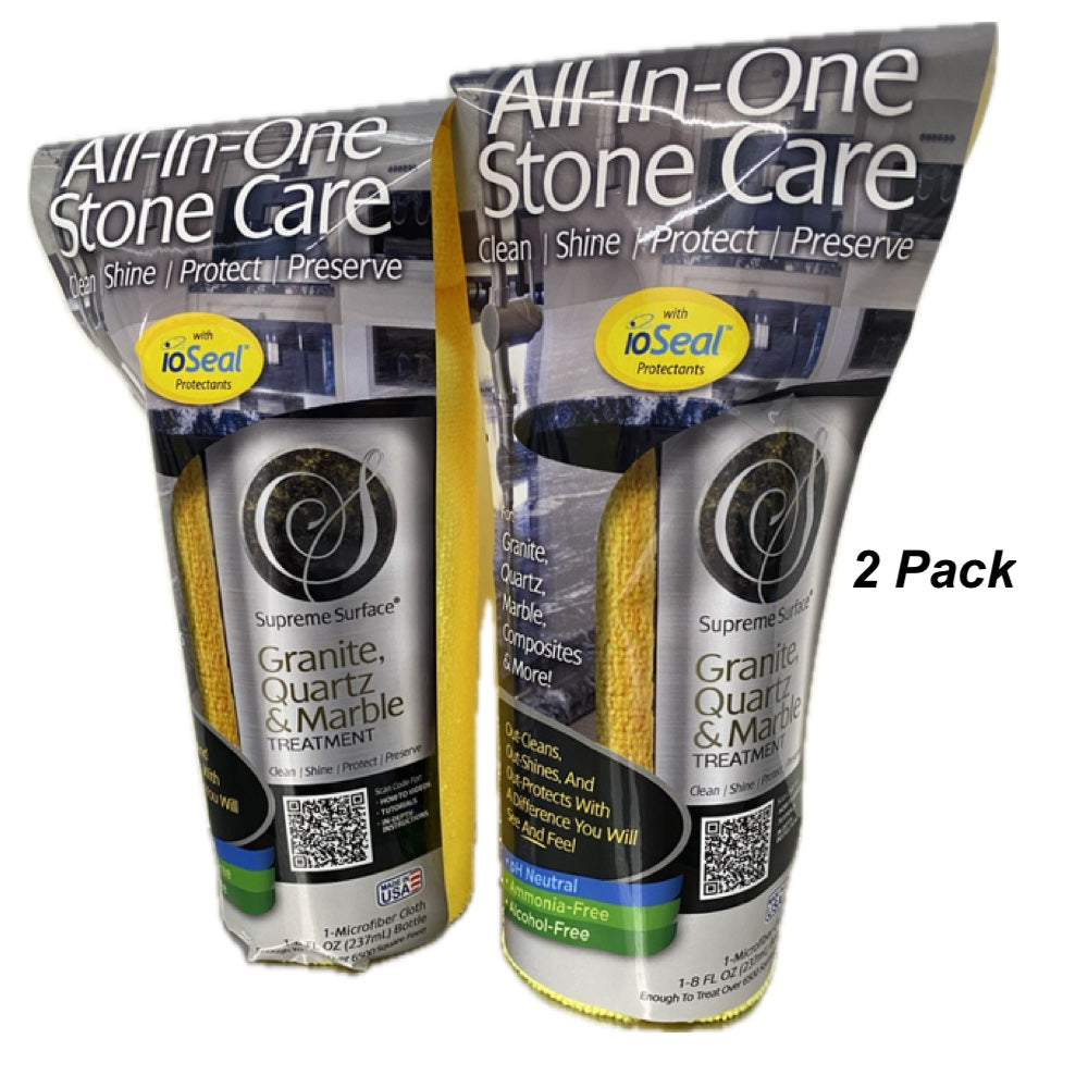 All-In-One Stone Care (cleaner, polish, sealer) 8 fl oz Spray, and Microfiber Towel. SKU: AIO-BP-8B-x1.